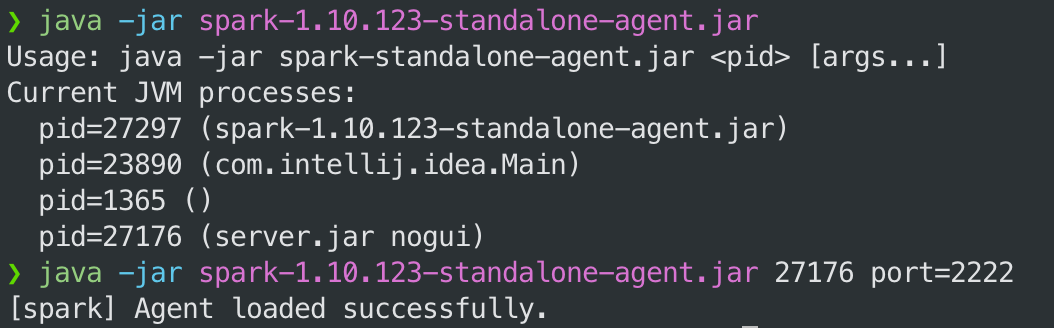 java -jar spark-x.y.z-standalone-agent.jar <pid> port=2222