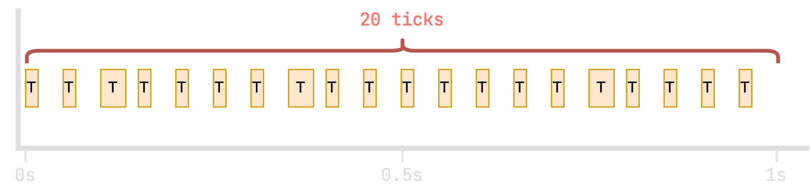 As you can see, all ticks in this example took less than 50 milliseconds, but they were spaced out to ensure that exactly 20 were processed in a second.